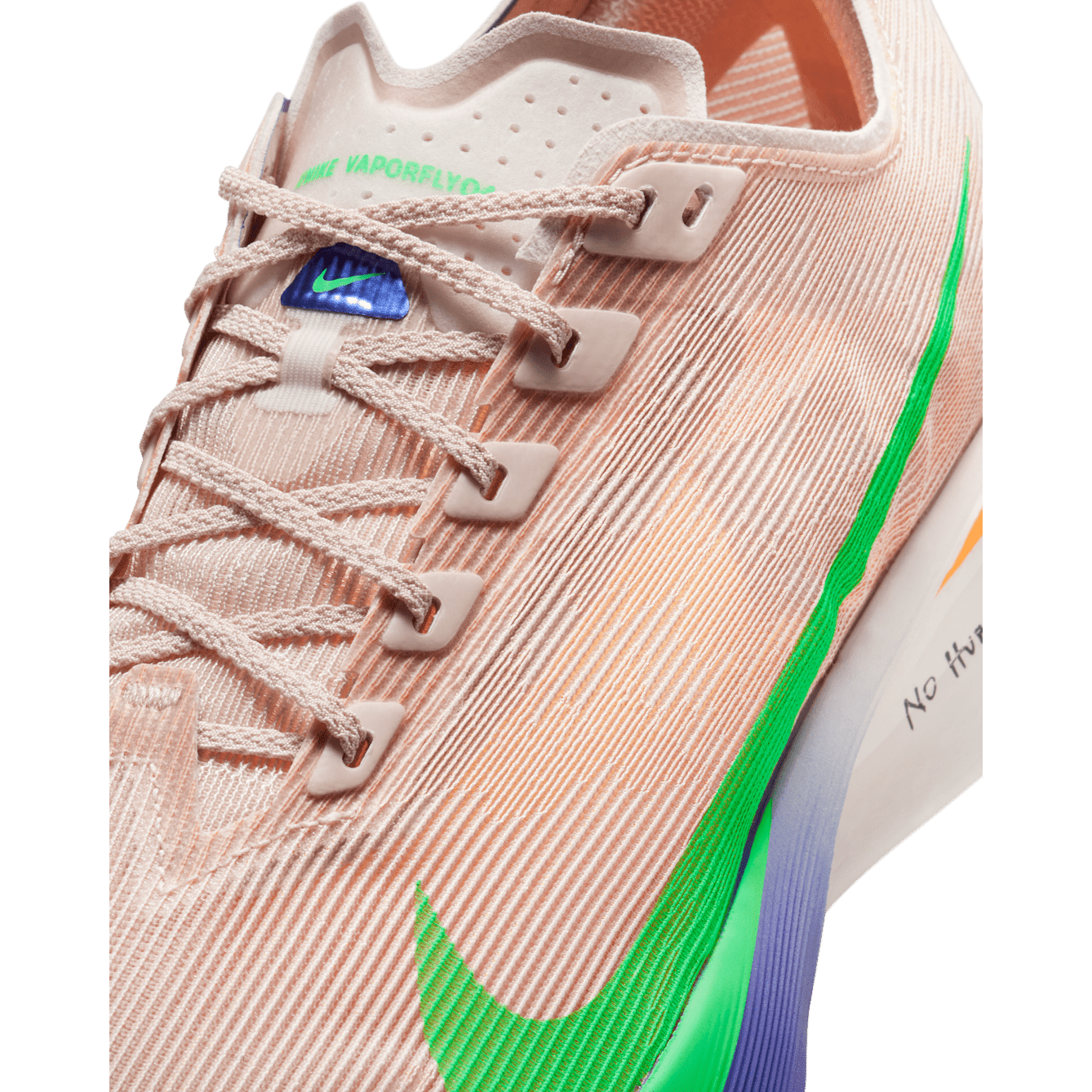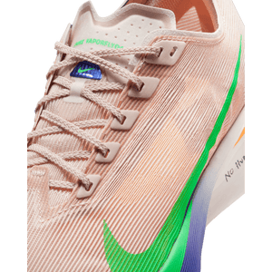 But it's not just the technology behind the Vaporfly 4 that sets it apart, it's the story behind the design. Eliud Kipchoge believes that achieving your dreams is not a solo endeavor, and we embodied this philosophy into the shoe. His family was involved in the color selection, and the multi-style Swoosh logo represents the strength of a team. The inspiring message of "No human is limited" reminds you that with the right support system, anything is possible.