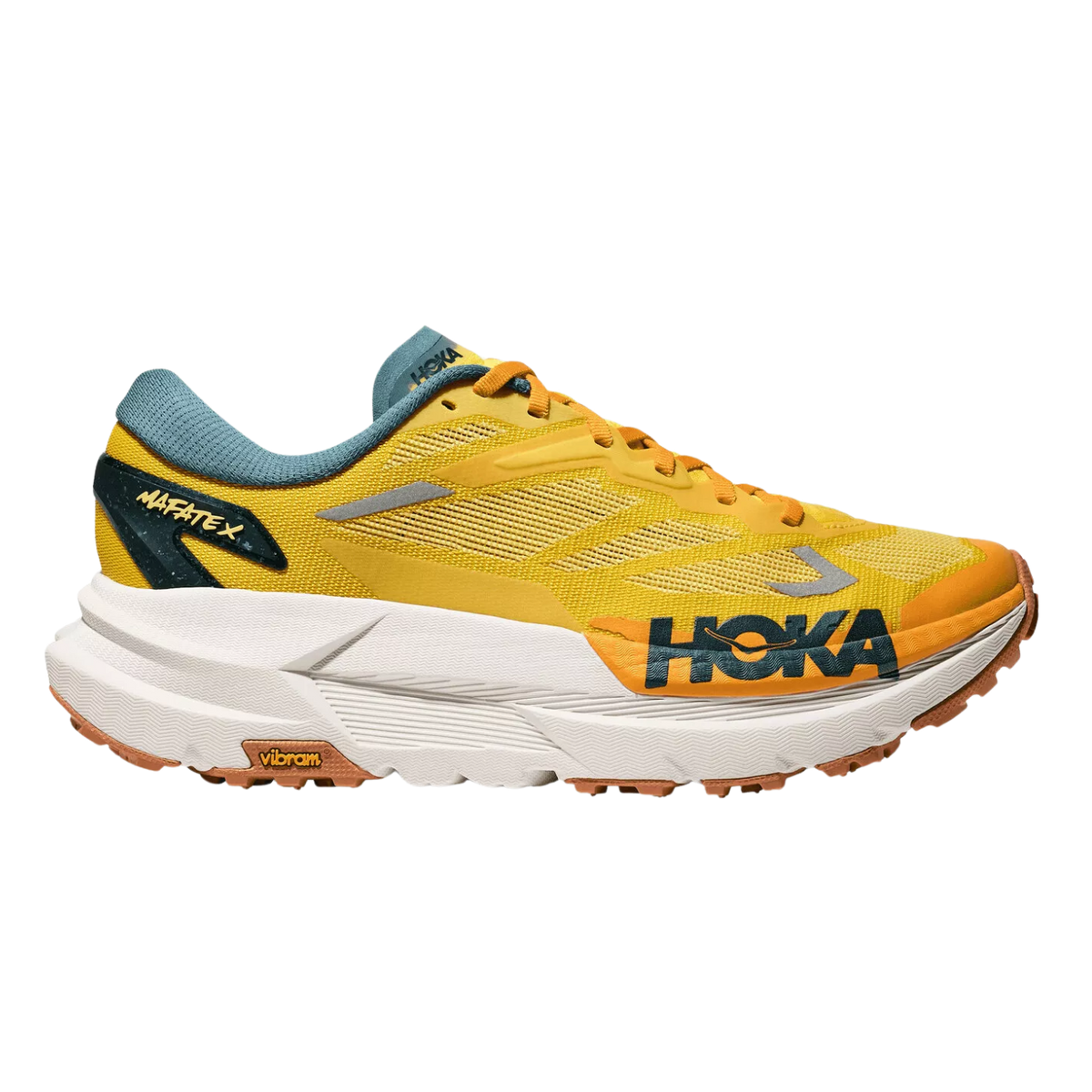 Stability and grip are equally dialled in with a Vibram® Megagrip outsole that uses 5mm multidirectional lugs to provide exceptional traction across varied surfaces. The overall build offers a secure, locked-in feel without sacrificing comfort, even on extended runs. Whether you’re racing or exploring off-road, the Mafate X is tuned for trail dominance.