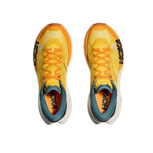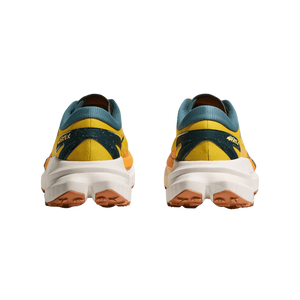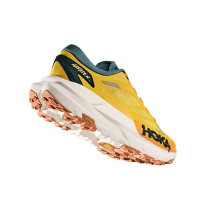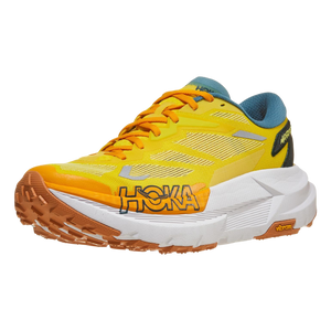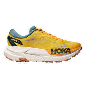 This shoe features a forked carbon fibre plate embedded between two layers of foam—PEBA and supercritical EVA—for maximum energy return and smooth transitions across any terrain. The lightweight woven upper boosts breathability and dries quickly, helping feet stay cool and comfortable no matter the trail conditions. Thanks to its gusseted tongue, trail debris stays out, keeping your run distraction-free. Paired with HOKA’s early-stage Meta-Rocker geometry, runners can count on consistent forward momentum and support over long distances.